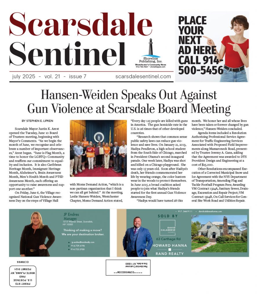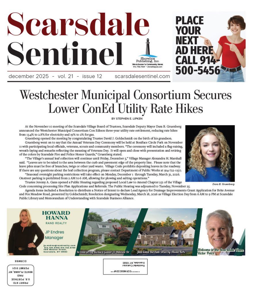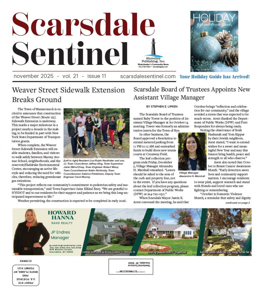 A monthly print/online news;paper serving Scarsdale and the surrounding areas of Westchester County